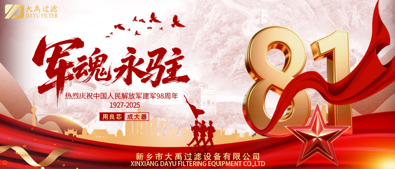 值此中國人民解放軍建軍節之際,新鄉市大禹過濾設備有限公司向所有現役及退役軍人致以崇高的敬意。作為一家以技術創新為核心、以品質堅守為使命的過濾解決方案提供商,公司始終秉持“用良芯·成大器”的企業精神,將軍人般的嚴謹態度與工匠精神融入每一道生產工序,為能源、化工、環保等行業提供高.效可靠的濾芯產品。